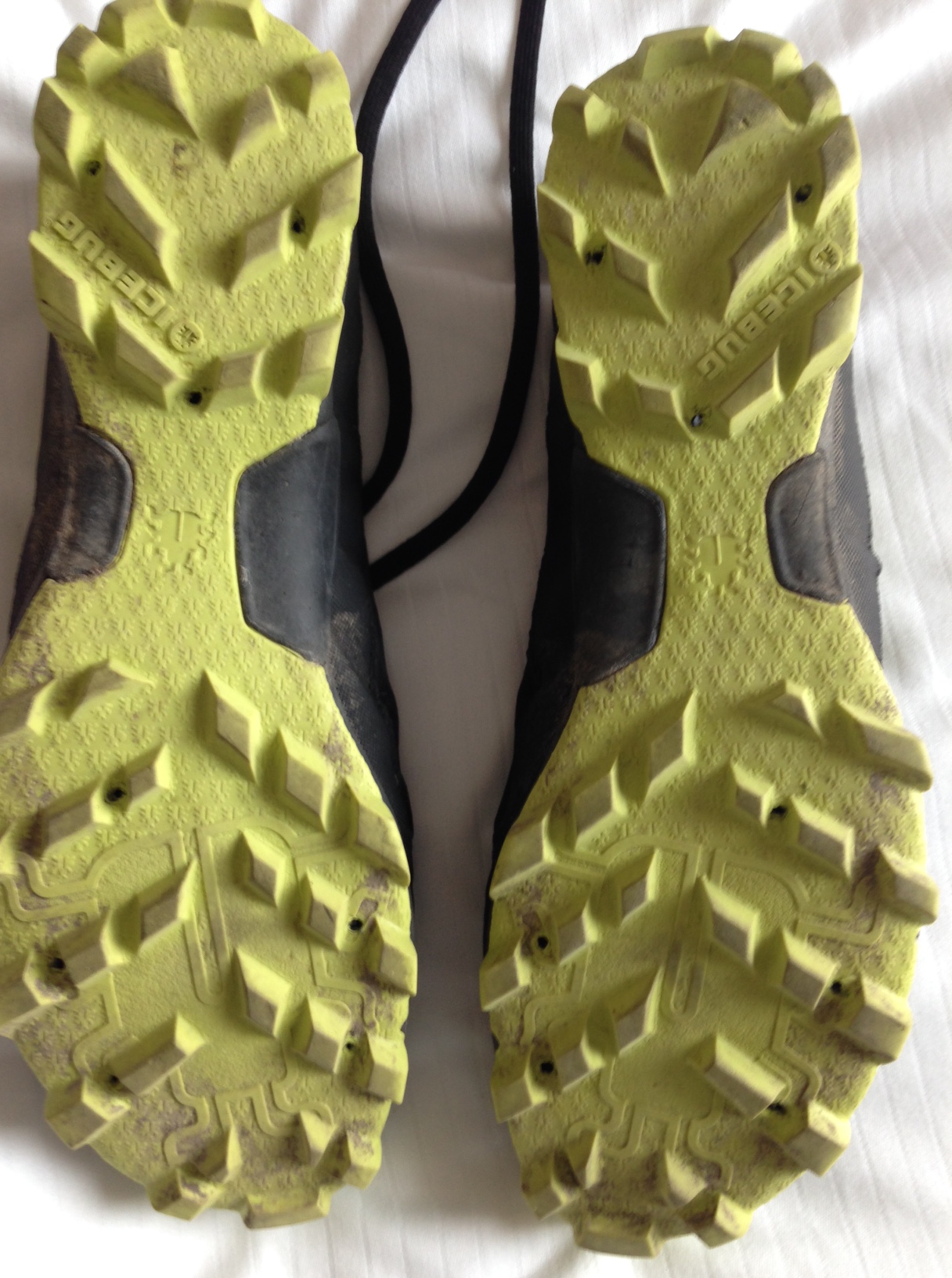A la dernière minute, nous avons décidé de « percer » des trous dans les semelles de nos chaussures. Et oui je dis bien percer, cela pour favoriser le drainage et alléger en quelque sorte la foulée sur le long terme.