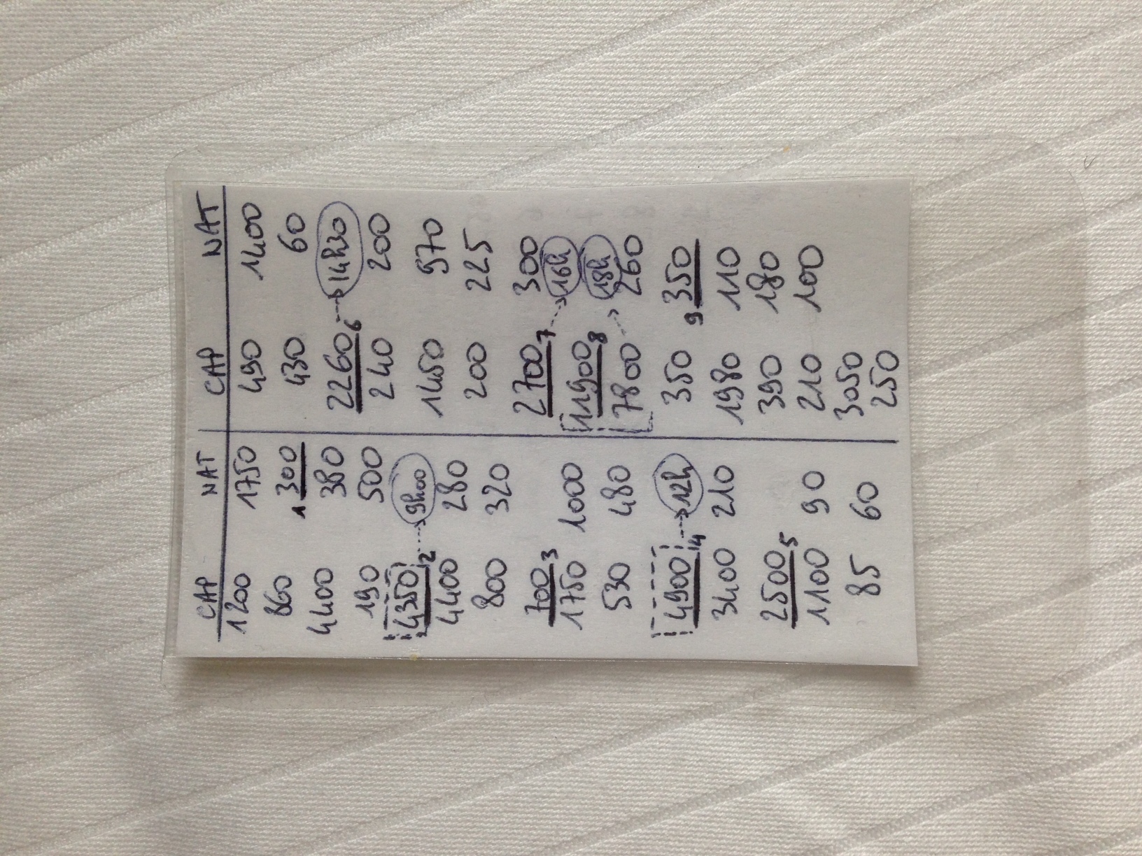 Là encore, Thomas a puisé dans son imagination pour nous sortir ce système, une carte plastifiée avec le détail de chaque bloc + ravito :